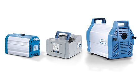Oil-free, chemically resistant diaphragm pumps for pumping aggressive gases and vapors.