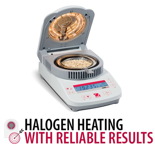 Halogen heating and dual weight-temperature calibration provide fast, reliable results.